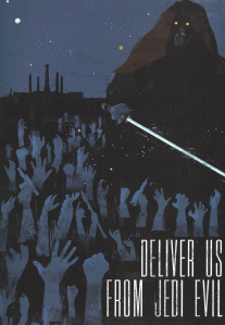 Another poster that relies far too heavily on a real-world reference is the Separatist “Deliver Us From Jedi Evil” image. The idea behind it, that the Separatists would depict the Jedi as uncaring and c